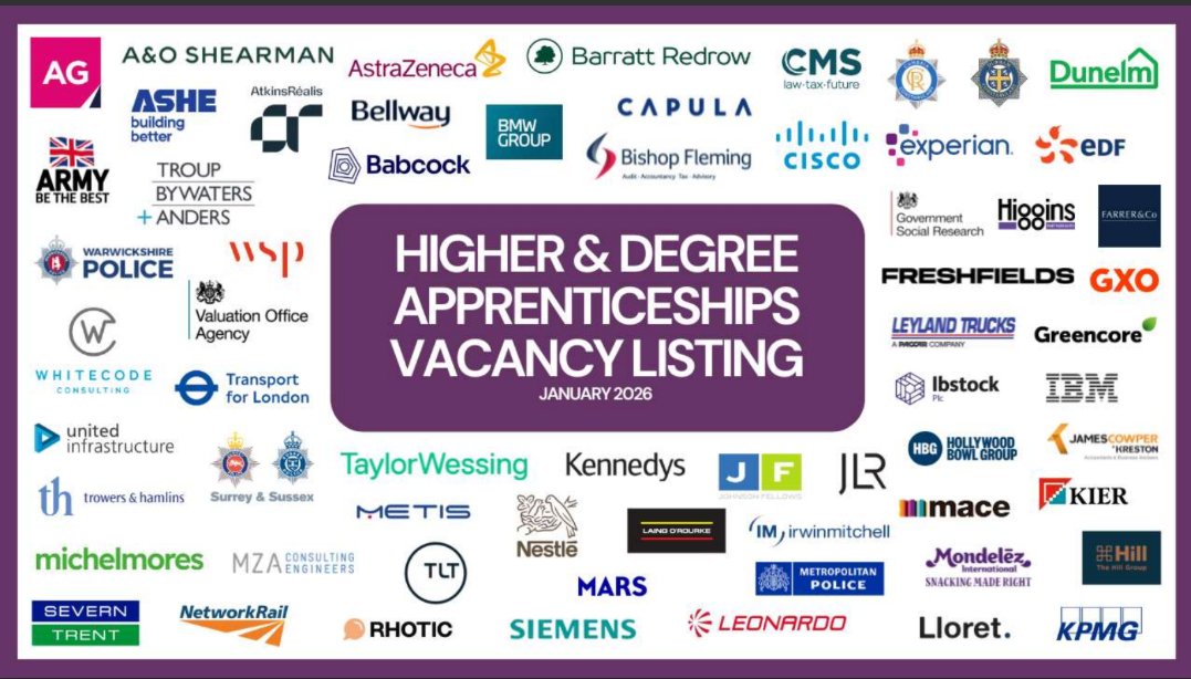 The Higher and Degree Vacancy Listing will be produced three times this academic year (October, January and April) by Amazing Apprenticeships on behalf of the Careers & Enterprise Company. The British Army, National Rail, IBM, EDF and Jaguar are just some of the leading companies listing apprenticeship vacancies, from Data Analyst to Journalist, Economist to Civil Engineer, there’s something for everyone.